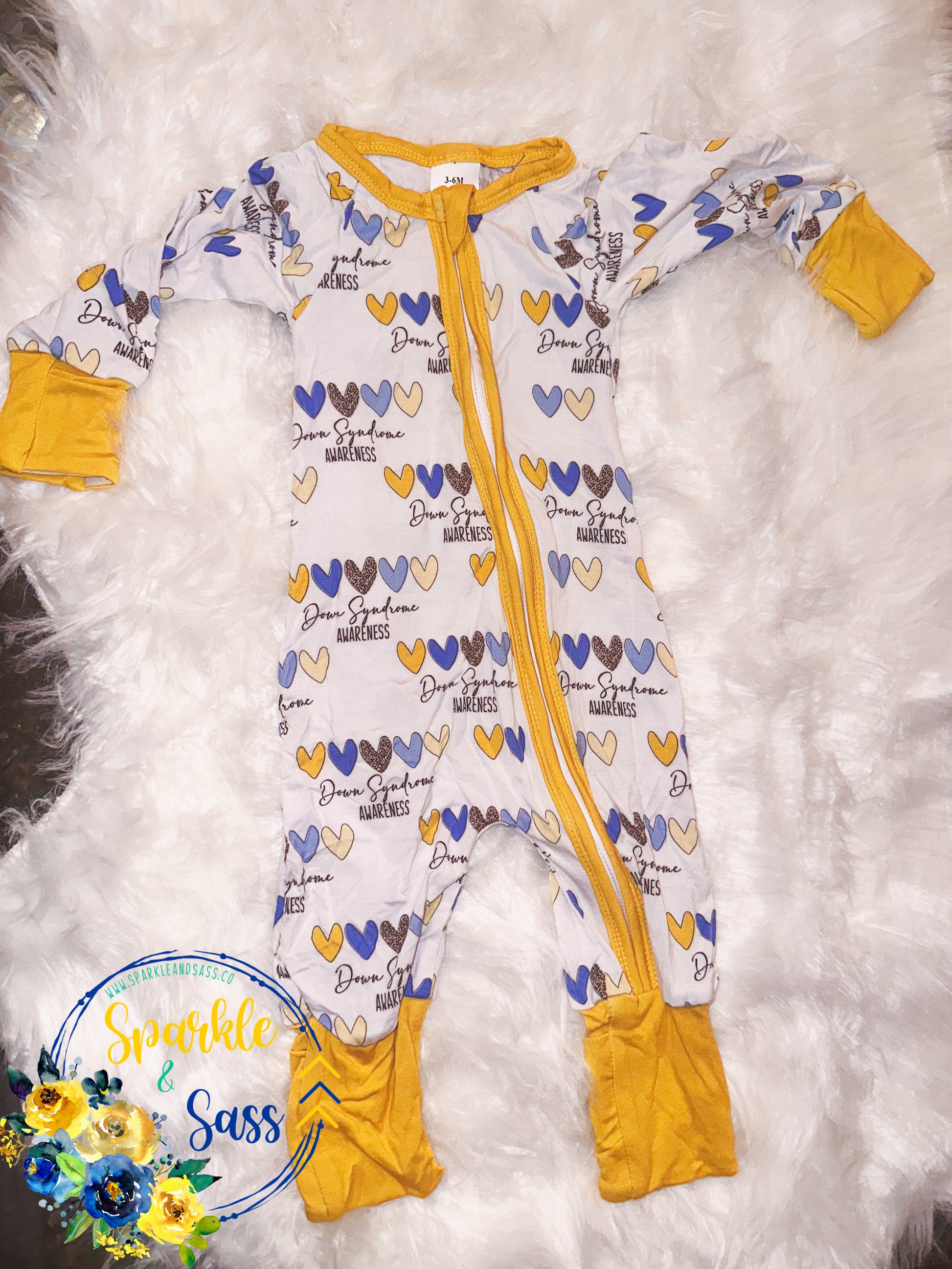 Down Syndrome Awareness Hearts One Piece Bamboo Sleeper